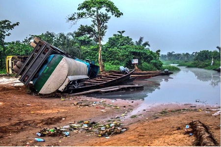 A petrol tanker went totally down in a ghastly motor accident that took place on one of the major roads in Lagos state.