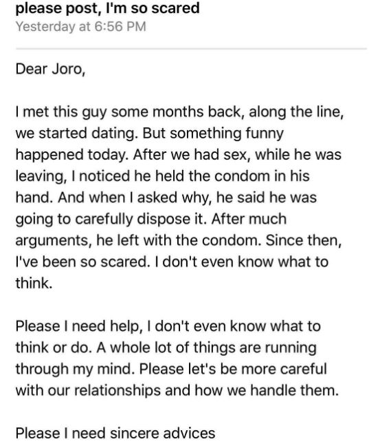 According to her, the man guarded his condom jealously after the s*xual encounter. The lady's story has attracted the response of a married man from Port Harcourt, Rivers State who supports the man's action of taking away his used condom.