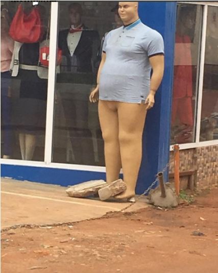 The mannequin here as spotted in the Southern part of Nigeria was designed to suit the real body structure of human beings who are overweight.